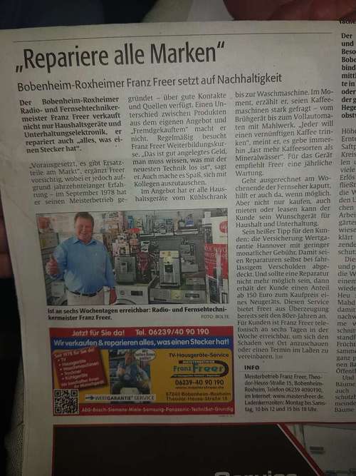 Zurück zu Kaffeemaschinen Reparatur Bobenheim-Roxheim Meisterbetrieb Franz Freer